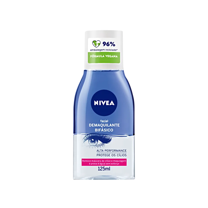 Demaquilante bifásico para todos os tipos de pele. NIVEA Demaquilante promove limpeza de alta performance no rosto, além de remover maquiagem à prova d’água com facilidade.